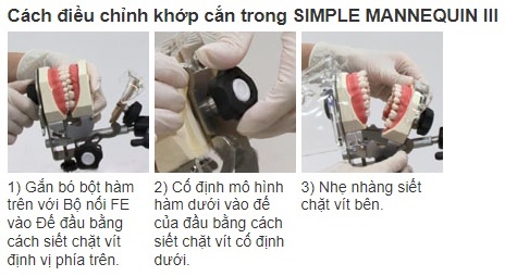 + Một vít nằm trong đế đầu được sử dụng để cố định các mô hình hàm trên và hàm dưới.