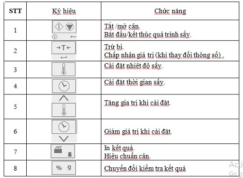 II. CÁC PHÍM CHỨC NĂNG CỦA CÂN SẤY ẨM OHAUS MB23
