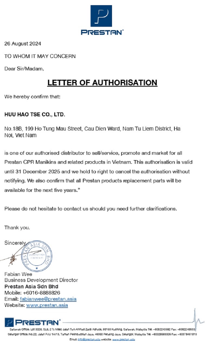 Ủy quyền đại lý chính thức của Prestan - Hoa Kỳ tại thị trường Việt Nam