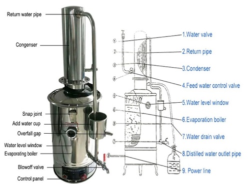 Cấu tạo máy chưng cất nước một lần 20 lít YAZD-20