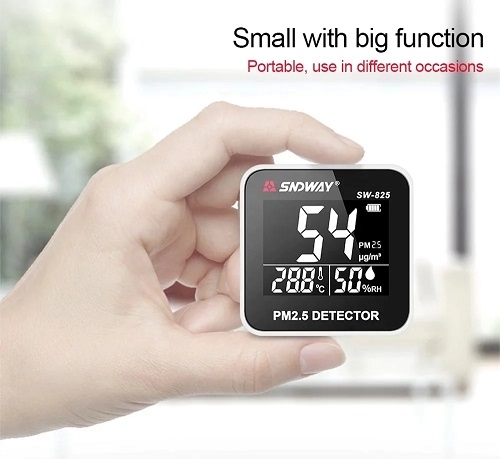 Thông số kỹ thuật máy đo chất lượng không khí SNDWAY SW-825 PM2.5 (nhiệt độ, độ ẩm, bụi mịn):
