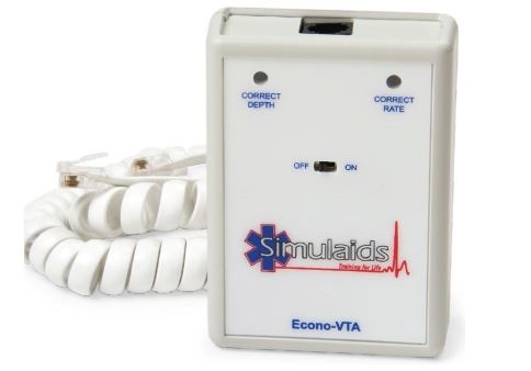 - Đi kèm với mô hình là Hộp VTA (Trợ lý đào tạo trực quan) gồm 2 đèn hiển thị độ sâu và tần suất ép ngực chính xác. Pin 9V DC được lắp ở mặt sau của hộp VTA. Khi bật công tắc hộp, đèn báo độ sâu chính xác và tỷ lệ chính xác sẽ nhấp nháy, hộp VTA đang hiệu chuẩn. Bạn có thể tập ép ngực khi đèn ngừng nhấp nháy.