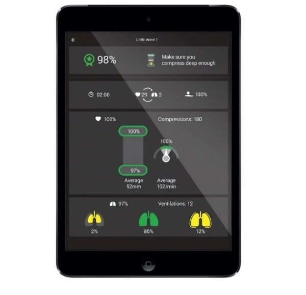 + Biện pháp cải thiện Little Anne QCPR cho phép giáo viên theo dõi tới sáu sinh viên cùng một lúc. Ứng dụng QCPR Instructor cung cấp một cách dễ dàng để xem sự tóm tắt hiệu suất giúp làm nổi bật những sinh viên nào có thể yêu cầu hướng dẫn thêm. Trong nháy mắt, bạn có thể thấy bất kì người học nào ép tim không đủ sâu, hay ép tim với tốc độ chính xác và ai đang thông khí quá mức. Sinh viên có thể theo dõi hiệu suất thực hành của riêng mình bằng ứng dụng QCPR Learner hoặc thiết bị phản hồi SkillGuide