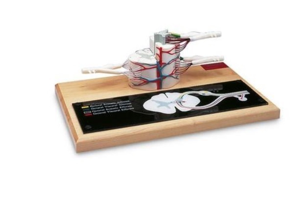 - Mô hình tủy sống này cho thấy một đoạn của tủy sống trên ngực và được phân chia theo chiều dọc và dọc cho thấy rễ thần kinh cột sống.