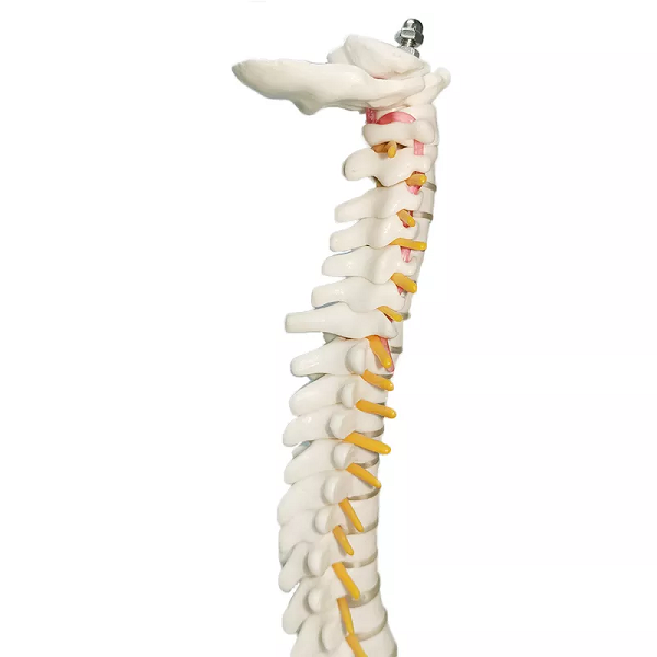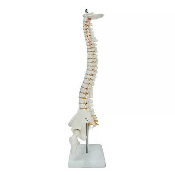 Mô hình xương cột sống 85cm mô tả hình ảnh trực quan toàn bộ cột sống kèm rễ thần kinh, các hình thái xương các đốt rõ nét, đĩa đệm trong suốt, mềm.